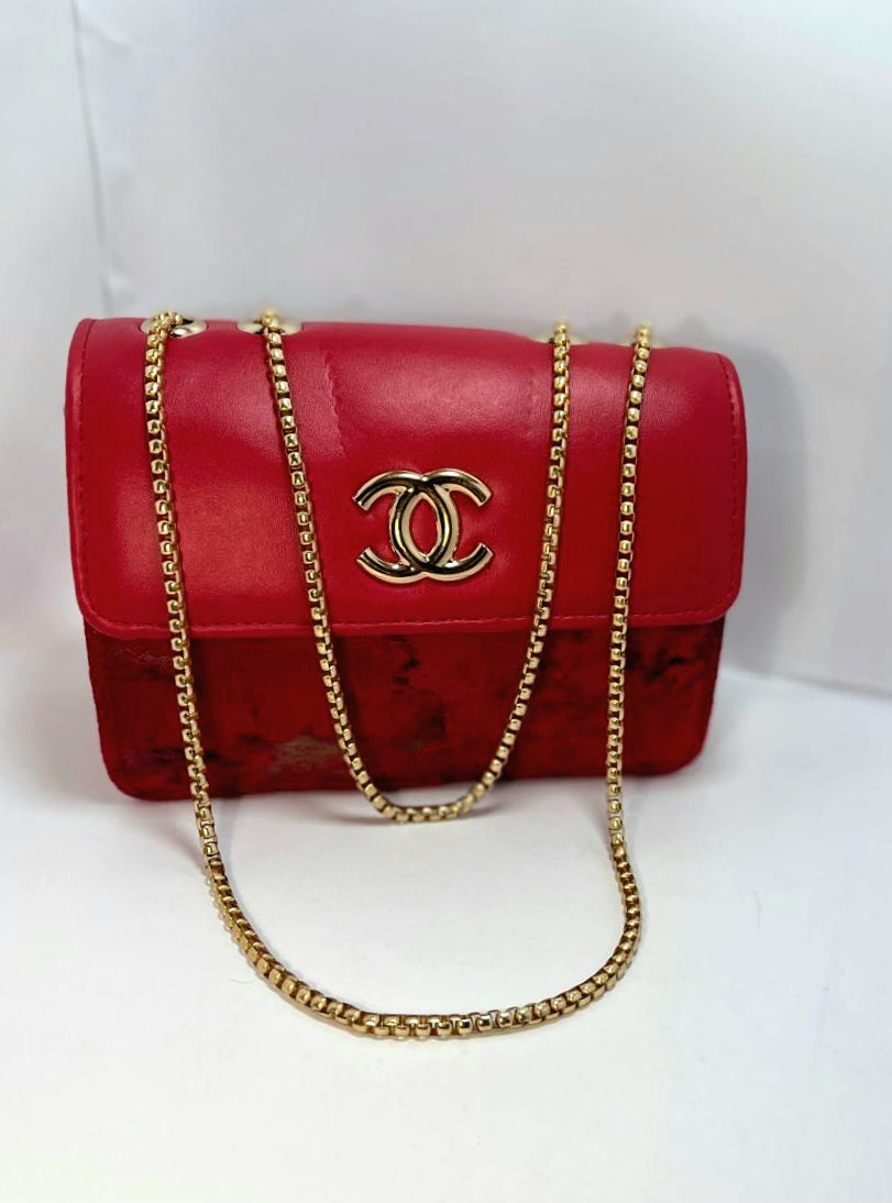 Elevate your style with this stunning red leather handbag, featuring a luxurious gold chain strap and iconic CC logo. Perfect for adding a touch of sophistication to any outfit, this rectangular bag boasts a flap closure and versatile design, allowing you to wear it as a crossbody or shoulder bag. Its sleek, modern aesthetic makes it ideal for formal events, nights out, or everyday use. Pair it with your favorite dress or jeans for a chic, eye-catching look.